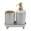 ترکیبی از لوازم پلاستیکی/رزینی (مانند جای مسواک، سطل زباله و جاصابونی) به همراه پارچه نیستند، بلکه ستهای تزئینی هستند که قطعات اصلی آنها غیر پارچهای است. همچنین تعداد پارچهها اغلب 3، 5 یا 6 پارچه است، اما این “پارچهها” معمولاً حوله یا دمپایی نیستند، بلکه ممکن است بخشی از اقلام تزئینی باشند یا منظور از پارچه، جنس خود ست (مثلاً پلاستیک با طرح پارچهای یا سنگی) باشد.